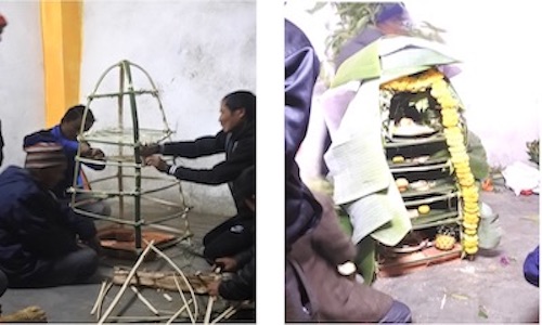 Magar is one of the languages the CEL, SU has been pursuing its research on. On the 21st December, 2018 a team from CEL, SU comprising of Dr. Meiraba Takhellambam (Assistant Professor), Ms Hima S ( Research Associate) and Gangi Maya Magar (Resource Person) were invited by the community to participate and document the ceremony of Kul Puja, the ancestral worship at Kadamtam, East Sikkim. The ceremony was being organised after a period of nine years and was hosted by Mr. G.S. Manger. The ceremony is mainly to worship the elements of nature and their ancestors. The ceremony is performed during the night, usually throughout the night and animal sacrifices are performed to appease the ancestors.