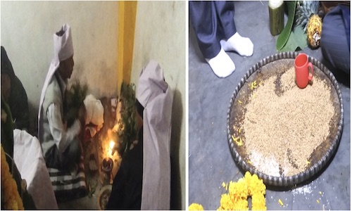 The ceremony was conducted by the Wapa, the priest and was assisted by the Mul Upase, the person who assists the Wapa during the whole ceremony. The Bhuda paka, or the representatives of the older generation along with the other members of the community make up the whole party.