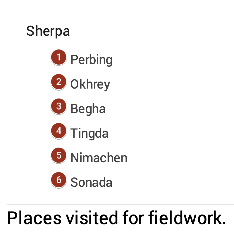 An eleven day pilot field survey was conducted by the Centre for Endangered Languages, Sikkim University from 6th-17th November, 2017 in Okhrey Latteytar, Ribdi, Buriakhop and Begha in West district and Perbing in South district of Sikkim by the following members from the Centre for Endangered Languages, Sikkim University: